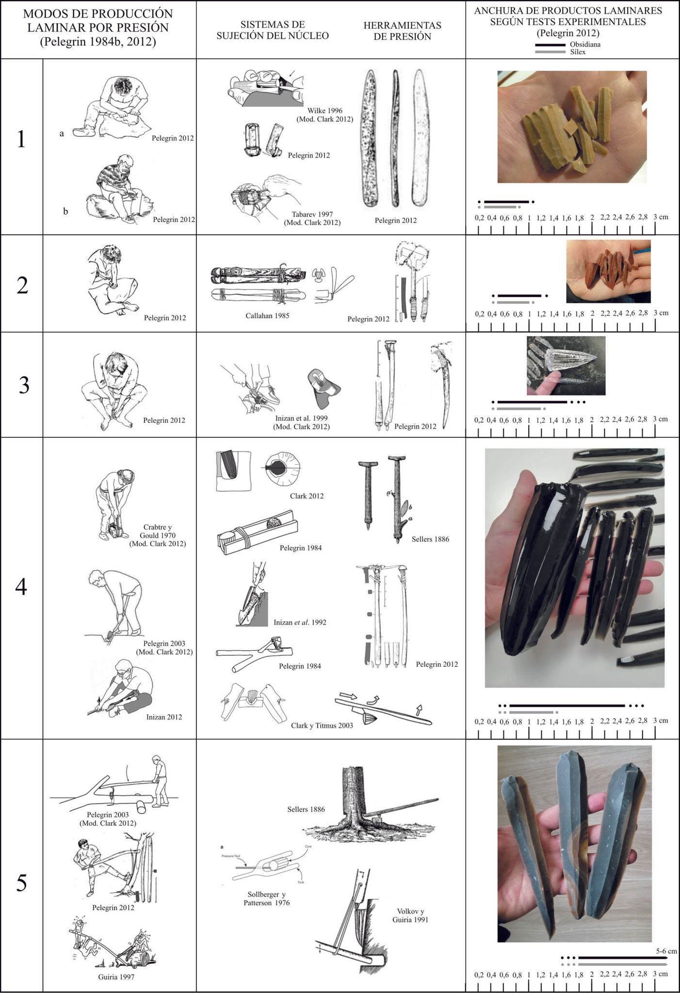 Pelegrin J. 2006. «Long blade technology in the Old World: an experimental approach and some archaeological results». A Skilled Production and Social Reproduction, J. Apel y S. Knutsson eds. Upsala: Societas Archaeologica Upsaliensis, 37-68.